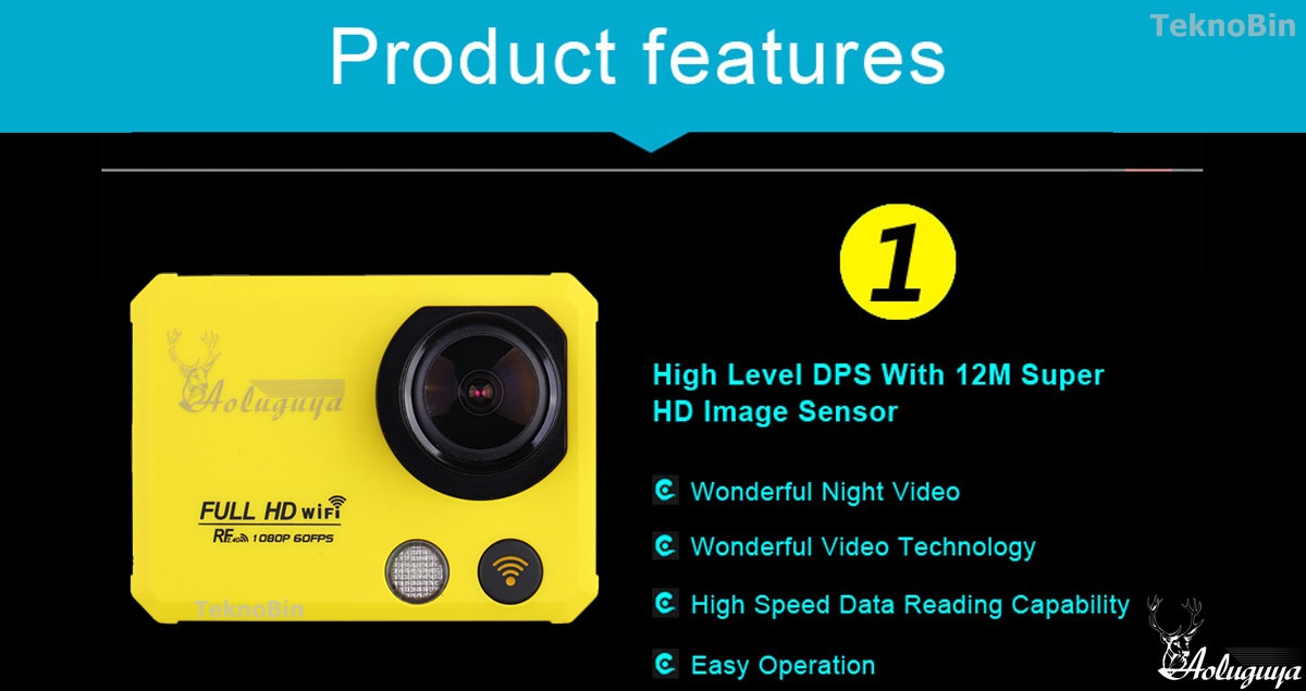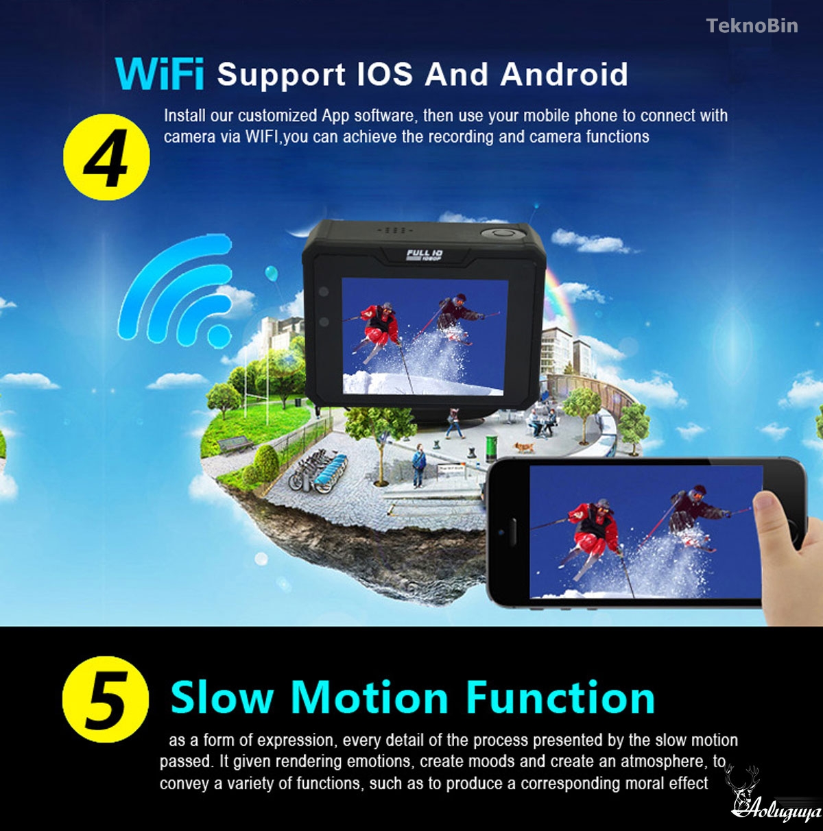 Özellikler WIFI, Su geçirmez, Mikrofon, Anti-Şok, Geniş Açı, 1080P