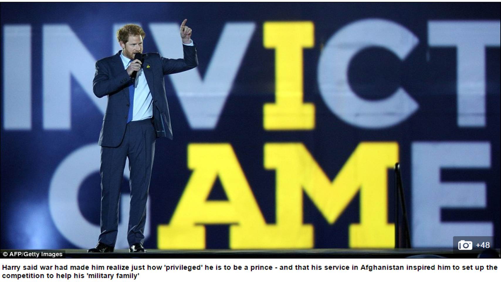 Harry said war had made him realize just how ‘privileged’ he is to be a prince – and that his service in Afghanistan inspired him to set up the competition to help his ‘military family’.