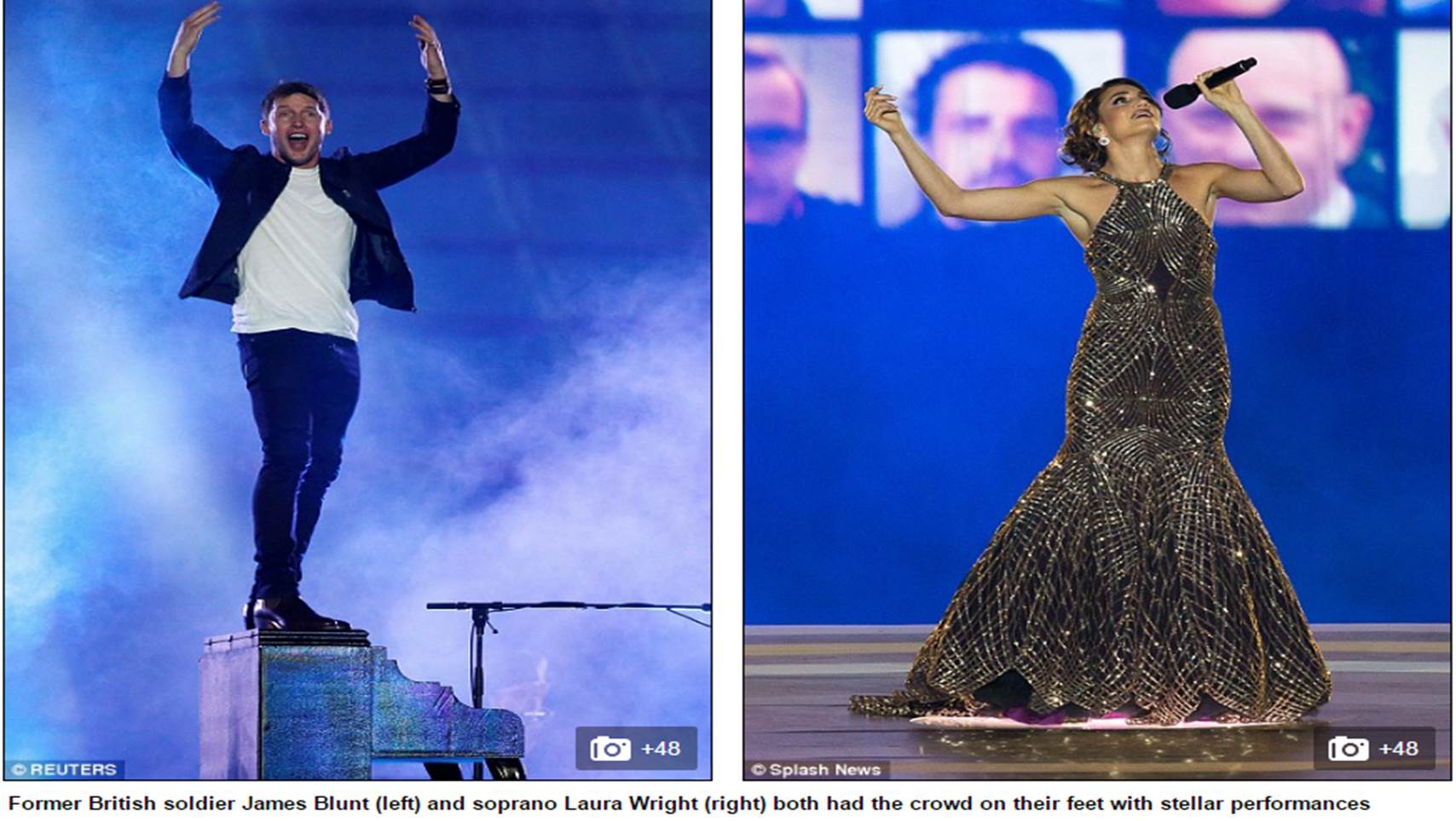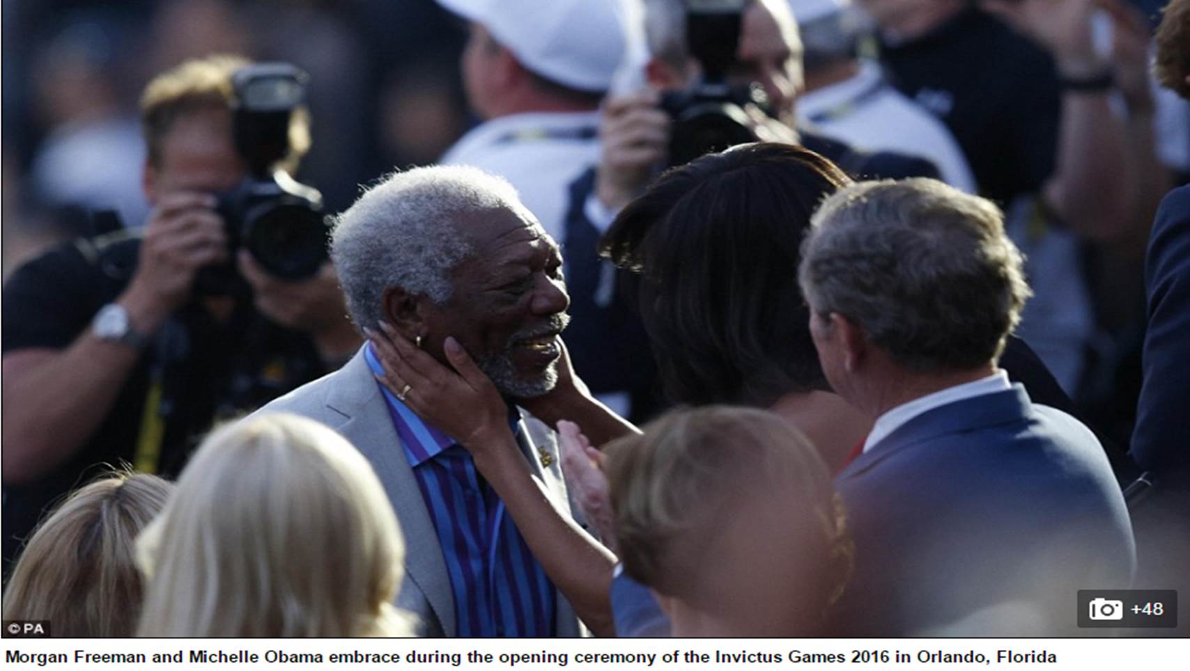 - They and stars including Morgan Freeman and singer James Blunt applauded as the 15 teams walked out