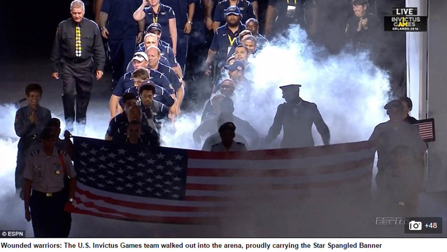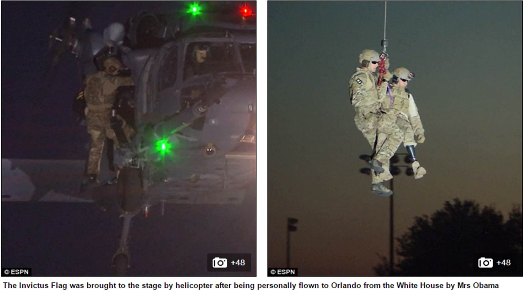 - Veteran Staff Sergeant August O’Neill dropped down from a helicopter to present and hoist up the Invictus flag