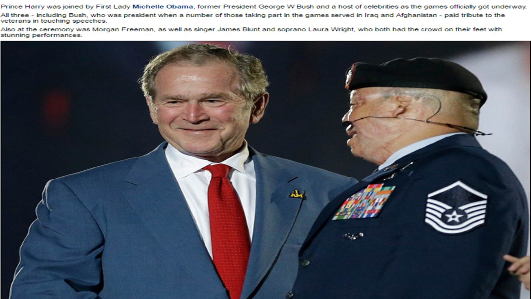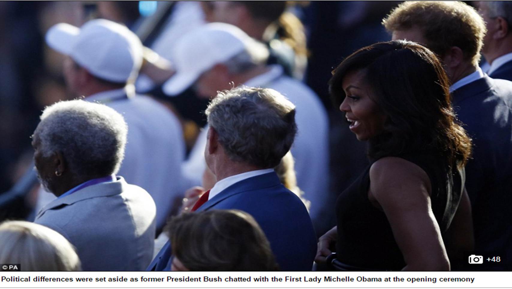 - Harry was at the opening ceremony with First Lady Michelle Obama and former President George W Bush