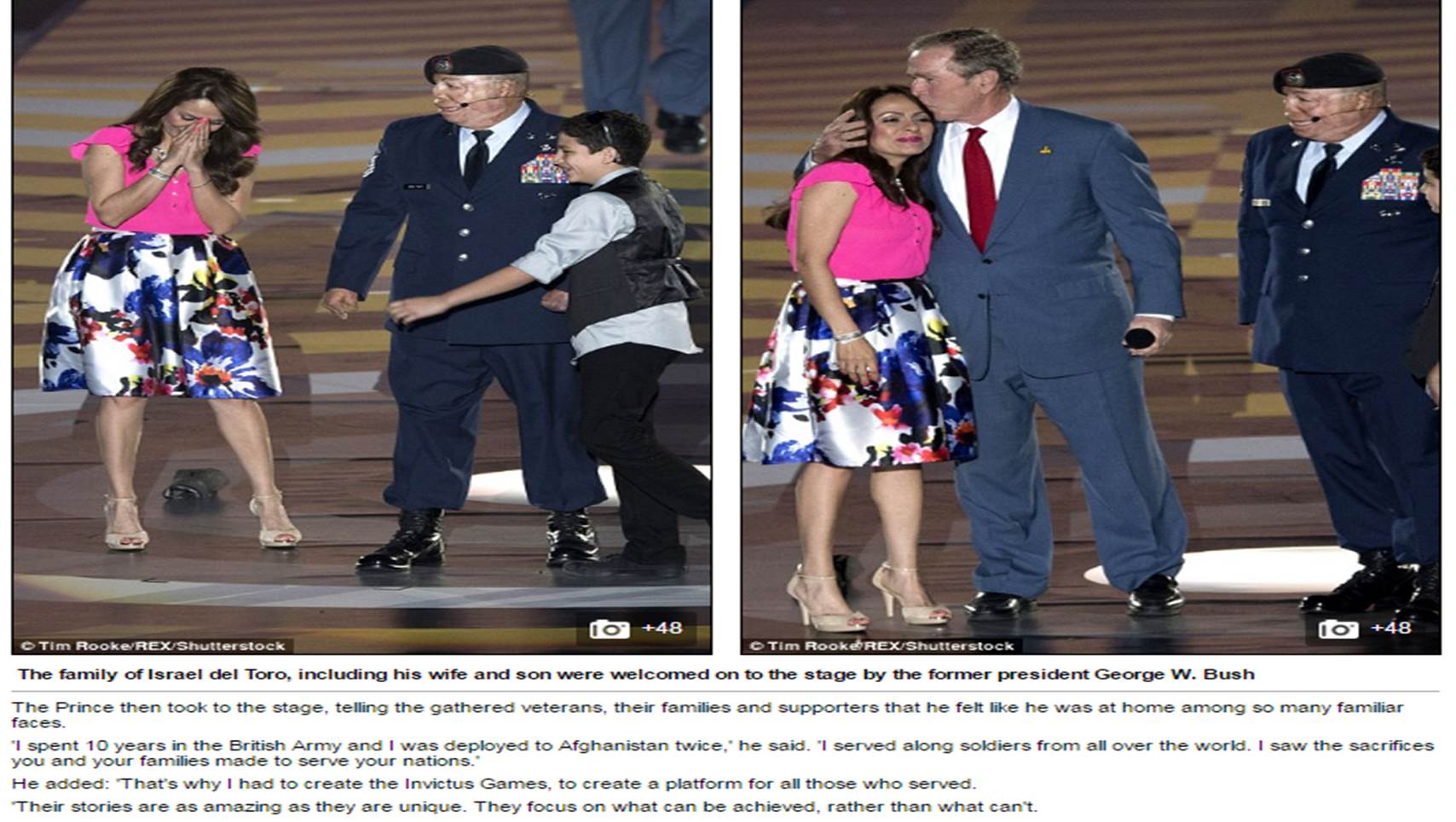 Let the games begin! ‘Privileged’ Prince Harry gives emotional speech about helping his ‘military family’ as he opens Invictus Games in Orlando with Michelle Obama and George W Bush