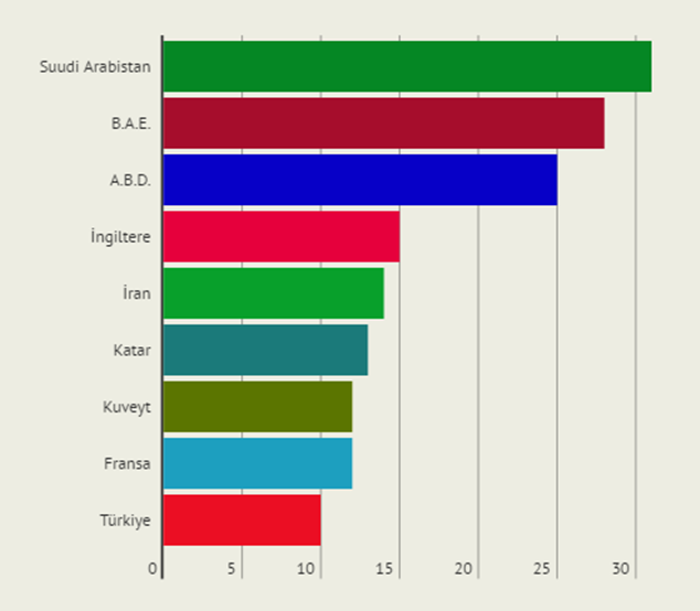 Arap gençlere göre Suudi Arabistan, Birleşik Arap Emirlikleri ve Amerika, ülkelerinin Ortadoğu’daki en büyük müttefikleri. Arap gençler, Türkiye’yi ise bir müttefik olarak görmüyor. Yaşam açısından da Türkiye, Arap gençler arasında popülerliğini kaybetmiş durumda