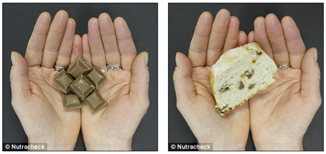 For chocolate, 30g is the amount you should have as a portion, which works out as a five pieces of a bar.