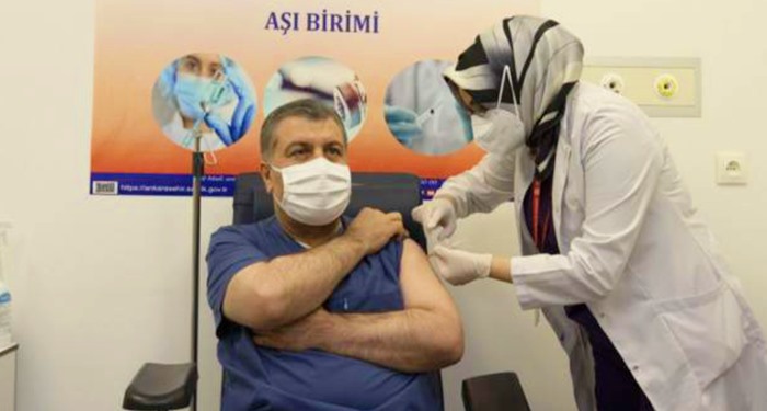 Türkiye İlaç ve Tıbbi Cihaz Kurumu Çin’de üretilen koronavirüs aşısına acil kullanım onayı vermesinin ardından, Sağlık Bakanı Fahrettin Koca ve Koronavirüs Bilim Kurulu üyeleri canlı yayında aşı oldular.