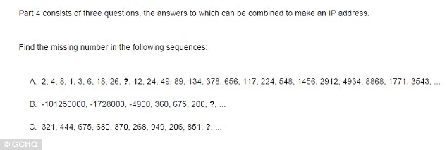 Part four consists of three questions based on sequences (questions shown above). Approximately 30,000 players have completed them to progress to the final stage of the puzzle