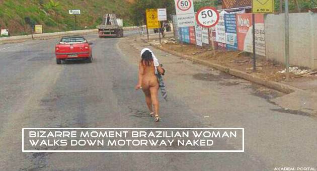 Shocking: Bizarre Moment Brazilian Woman Walks Down Motorway Naked