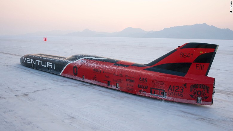 This vehicle is the most powerful electric car in the world, and can hit speeds as high as 372 miles-per-hour. The team is hoping to take it for a record-breaking run this summer.