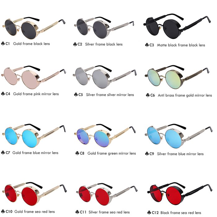 Yuvarlak Metal Güneş Gözlüğü Steampunk Erkek Kadın Moda Gözlük