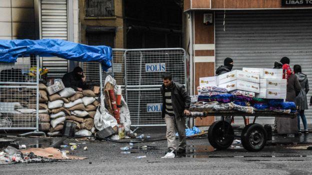 “Aralık ortasından bu yana usanmış Türk hükümeti militanlara karşı saldırı başlatırken, kriz dramatik bir şekilde kötüleşti. Hükümet Kışanak gibi ılımlı Kürtlere militanlara destek verdikleri iddiasıyla hukuki ve siyasi saldırılarını arttırırken, bir siyasi diyalog ihtimali az ve boşluğu sokak çatışmaları doldurdu. Diyarbakır Valisi Hüseyin Aksoy FT’ye yaptığı açıklamada, üç haftalık şiddetli çatışmaların ardından militanların şehir merkezinin yüzde 60’ından temizlendiğini söyledi. ICG’nin şimdiye dek 45 sivilin öldüğünü söylemesine karşın, Vali Aksoy bu yavaş ilerlemeden sivil kayıpları önleme girişimlerini sorumlu tutuyor.”