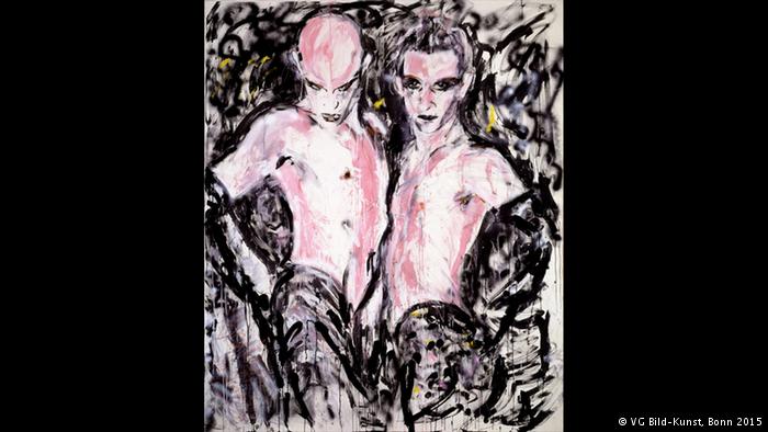 Luciano Castelli Berlin’e İsviçre’den gelen bir isimdi. Bu kentteki ‘Genç Yabaniler’in, yerleşik sanat anlayışını savunan kesimlere karşı başkaldırıları hoşuna gidiyordu. O da eşcinselliğini açıkça yaşayan bir isim olarak bu kargaşaya dahil oldu. Yukarıdaki resim sanatçının kendini, arkadaşı Salomé ile birlikte gösteren bir oto portresi.