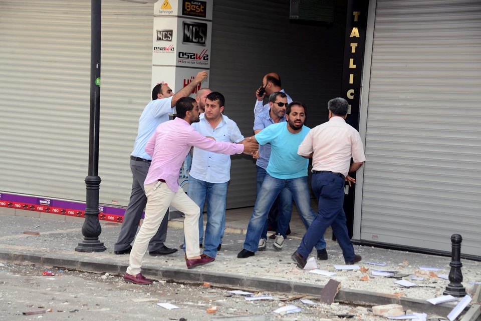 Patlamanın ardından binaya girmek isteyen partililerle polis arasında kısa süreli tartışma yaşandı.