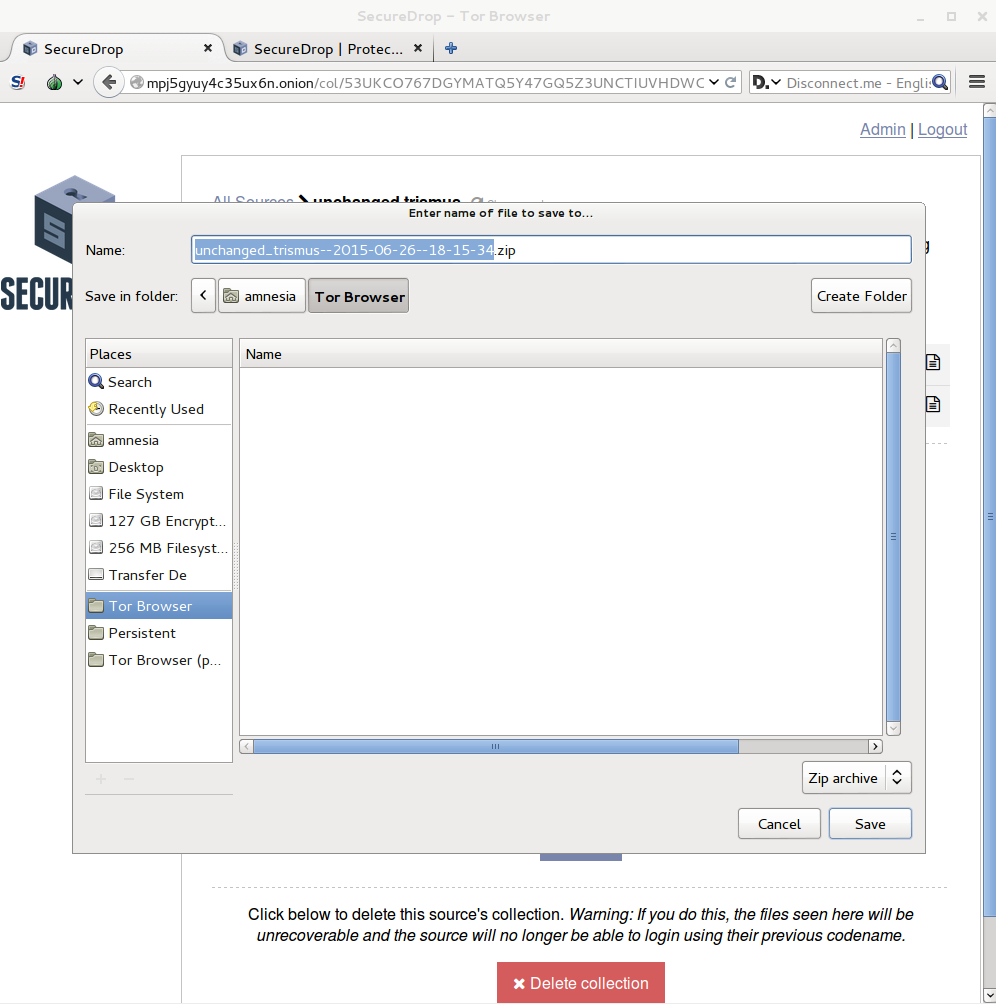Once downloaded to the sandbox folder, move the document to the designated USB stick you will use to transfer the documents from your Tails Journalist Workstation to the Secure Viewing Station. This will be known as your Transfer Device.