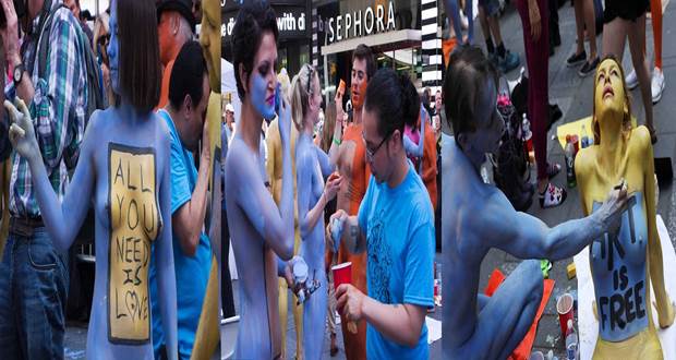 New York’s Times Square played host to 200 nude models over a four hour period while they were painted and photographed.