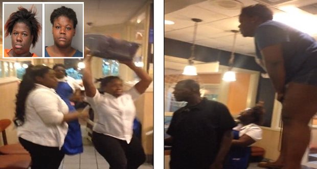 IHOP and employee Janika Nellums and her sister Sharika Strickland were filmed hurling chairs at each other in front of stunned customers in Memphis, Tennessee, on Saturday night.