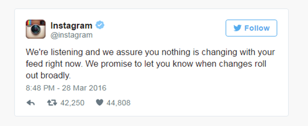 Instagram ve diğer sosyal medya platformlarında da yer alan tepkilerin ardından geri adım atan Instagram, Twitter üzerinden bir mesaj yayınlayarak söz konusu kararından geçici olarak vaz geçtiğini belirtti.