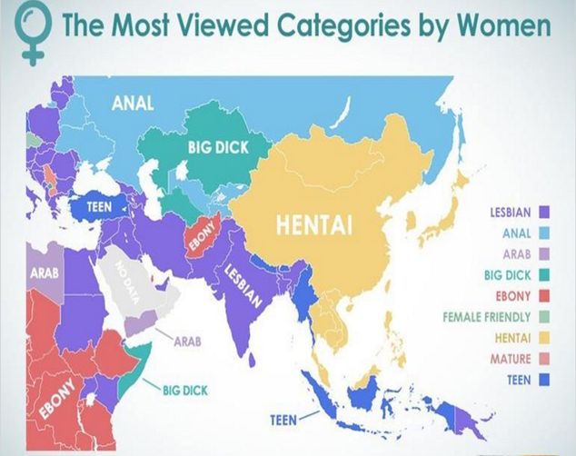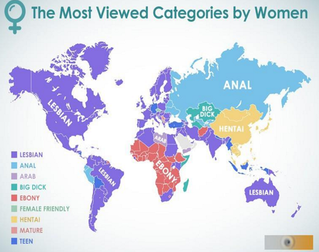 Dünya geneline bakıkdığında büyük bir çoğunluğun “Lezbiyen” kategorisine ilgi gösterdiği görülüyor. Bu da söz konusu siteyi daha çok lezbiyen kadınların ziyaret ettiği yönünde bir izlenim yaratıyor. Afrika’nın büyük bölümünde “Siyah” kategorisi ilgi görürken Rusya ve Ukrayna’da ters ilişki kategorisi çoğunluğu oluşturuyor. Uzakdoğu ülkelerinde ise Hentai adı verilen porno çizgi filmler en fazla izlenen videolar. Türkiye’de ise “genç” kelimesi üzerinde bir yoğunlaşma var ki bu konuda Almanya ile tercihlerimizin benzerlik göstermesi gözden kaçmıyor.