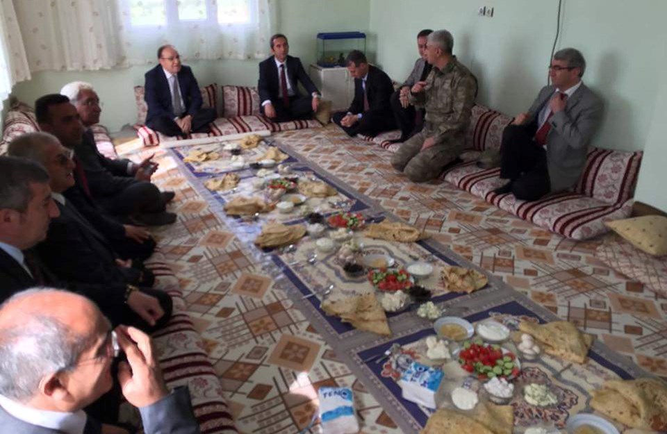 Vali Tutulmaz ile yeni yapılan lise binası ve yapımı tamamlanan sağlık ocağını gezen Turhan, davetlileri evinde ağırlayarak yemek ikramında bulunmuştu.