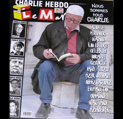 Kuşkusuz, bu duygu benzerliğinin en yoğun olduğu nokta, Charlie Hebdo’ya yapılan saldırı sonrasında kendini gösterdi. Charlie Hebdo pek çok değerli sanatçısını yitirmesine rağmen, saldırının hemen ardından özel bir sayı yayınladı. Leman da, Türkiye’de aynı tutumu izleyerek, ikinci Charlie Hebdo özel sayısını yayınladı. Üstelik kapakta, peygambere hakaret ettiği gerekçesiyle saldırıya hedef olan derginin usta çizeri Wolinski’nin İstanbul’daki Eyüp Sultan Camii’nin avlusunda başında namaz takkesiyle çizerken çekilmiş bir fotoğrafı vardı.