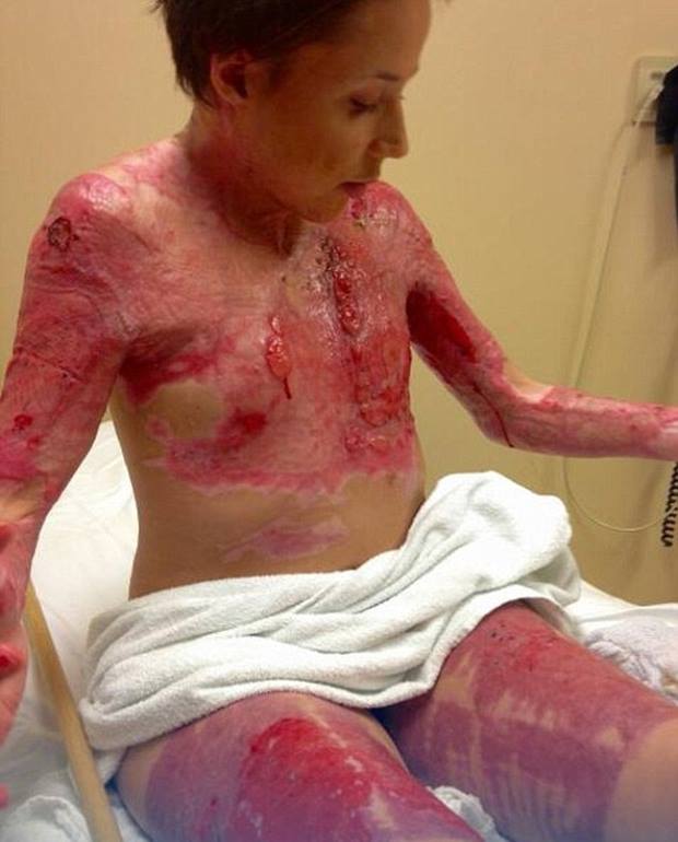 She woke up in the intensive care unit (ICU) a month later with 40 percent of her body burned and has since had undergone over 50 surgeries.