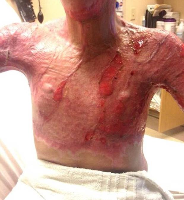 ‘I thought my body would go into shock right away, but it didn’t. I ran outside screaming, trying desperately to get my bra off as the underwire burned more than the rest.