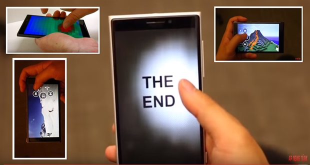 For example, the phone can detect an approaching finger to display controls for a video. It can also detect how the user is gripping the device, adapting how it then displays controls.