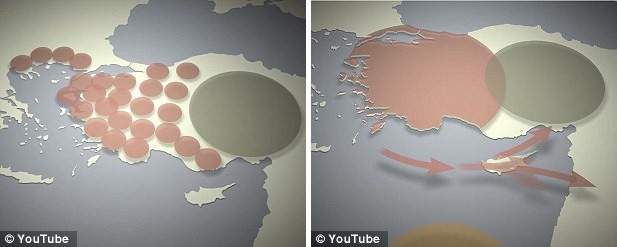 In the new scenario, it’s argued that the many Luwian-speaking petty kingdoms and western Asia Minor, a peninsula also called Anatolia, joined together in a coalition (red) to attack the neighbouring Hittites (green). The new theory suggests the coalition converged upon the Hittite capital Hattusa from land and sea