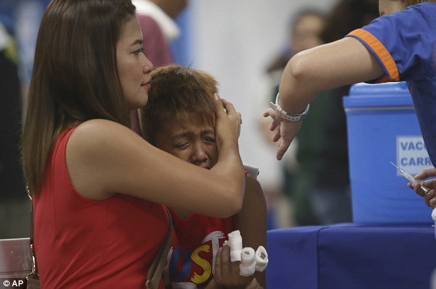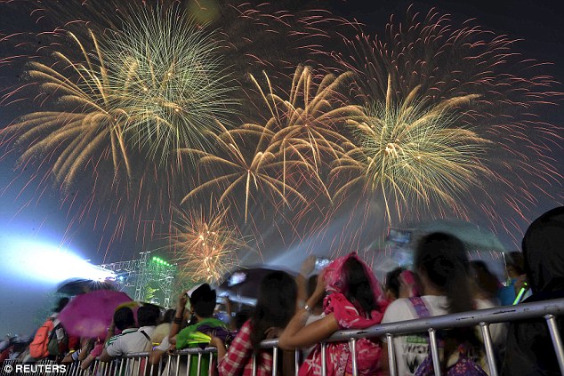 Officials promoted professional firework displays at shopping centres and in cities in a desperate bid to stop residents putting on their own shows. Above, a display in Bocaue