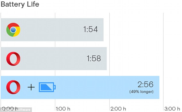 Opera found using its power save mode enabled the laptop to run for two hours 56 minutes – 54 per cent longer than with Chrome.