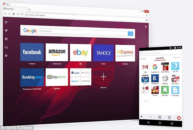 Opera (pictured for desktop and mobile) accounts for less than two per cent of the web browser traffic on the internet, far behind giants Google Chrome and Microsoft Internet Explorer