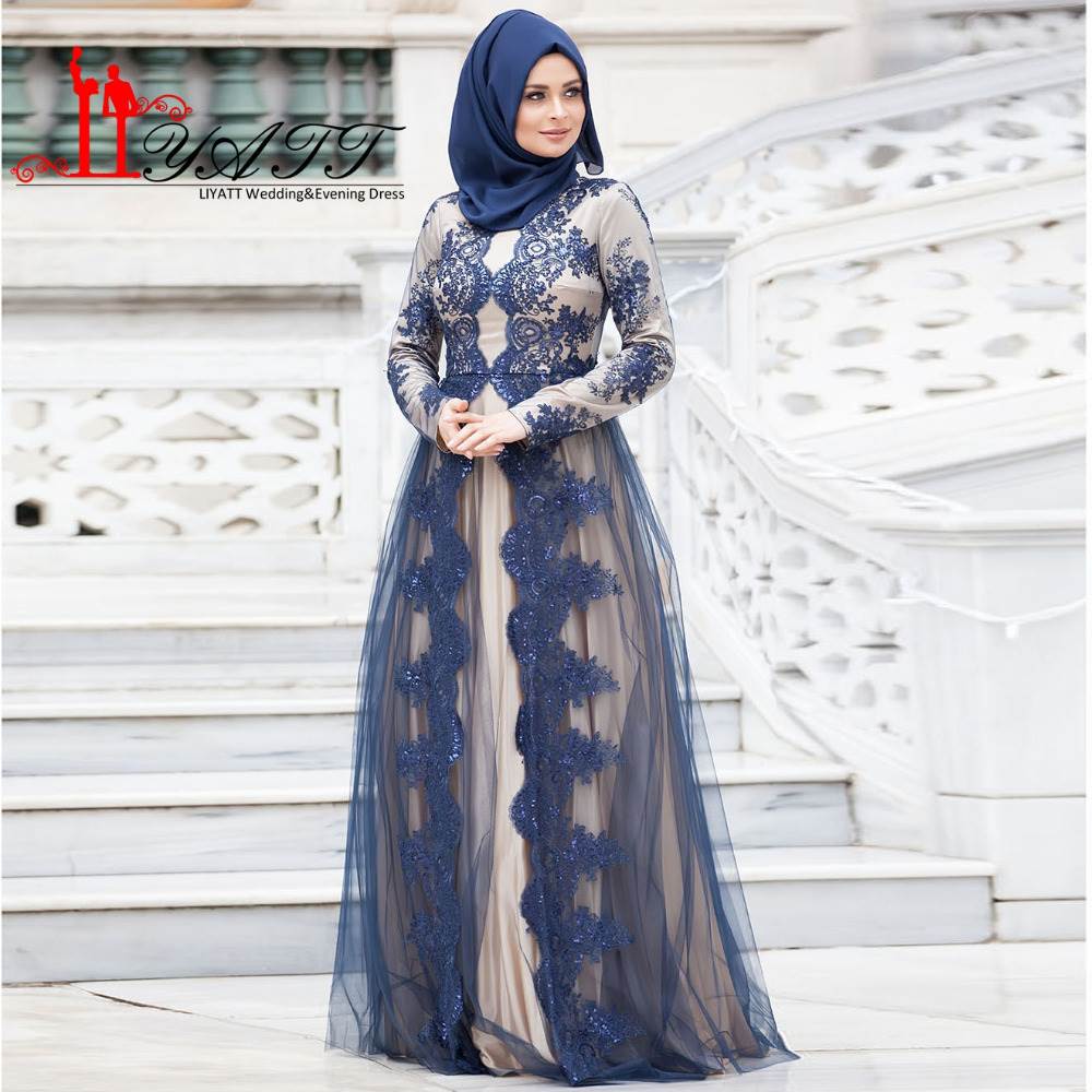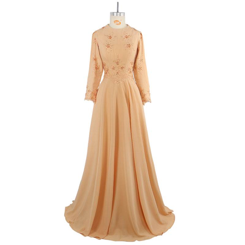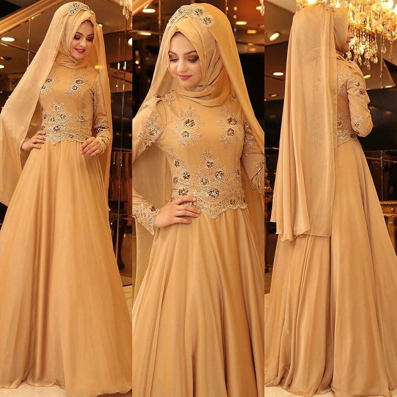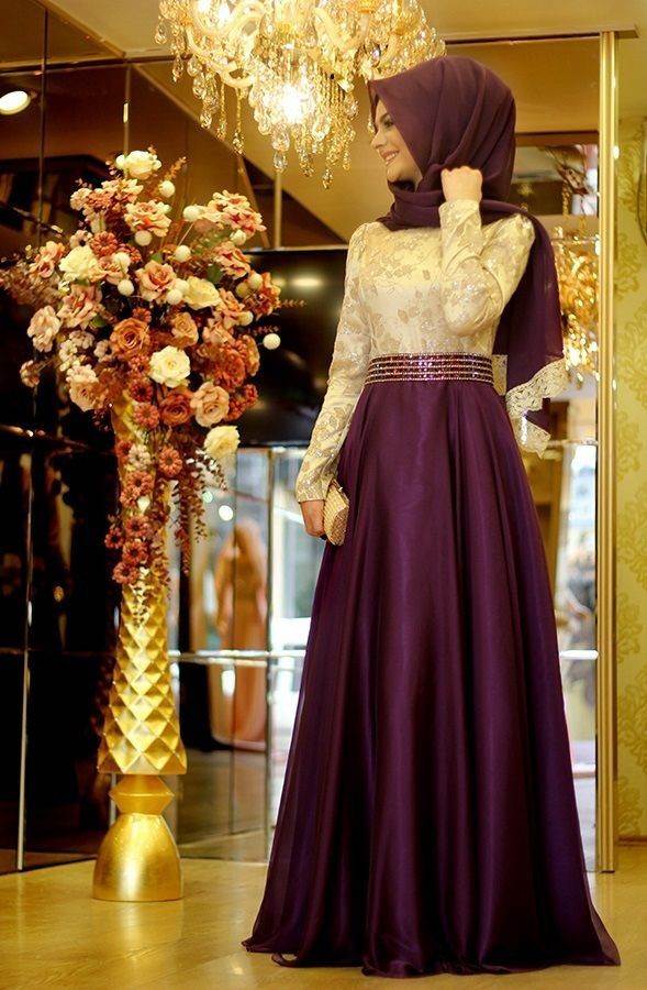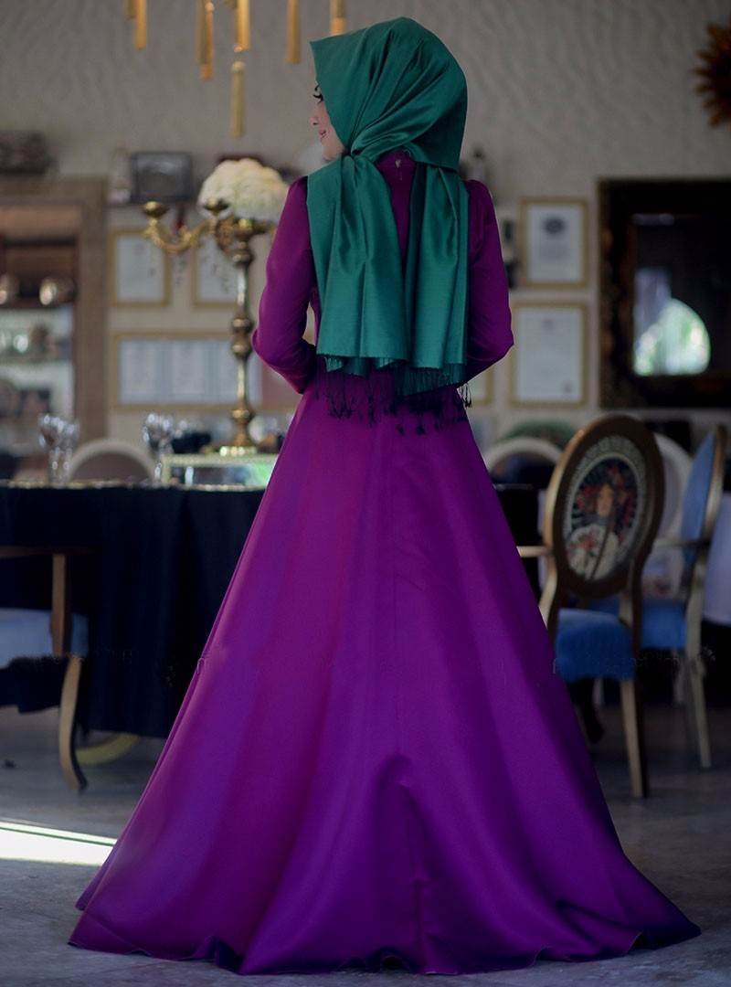 Zarif Kadın Mor Uzun Kollu Abiye Başörtüsü Dubai Kaftan 2017 Şifon Fomal Elbise Robe De Soiree