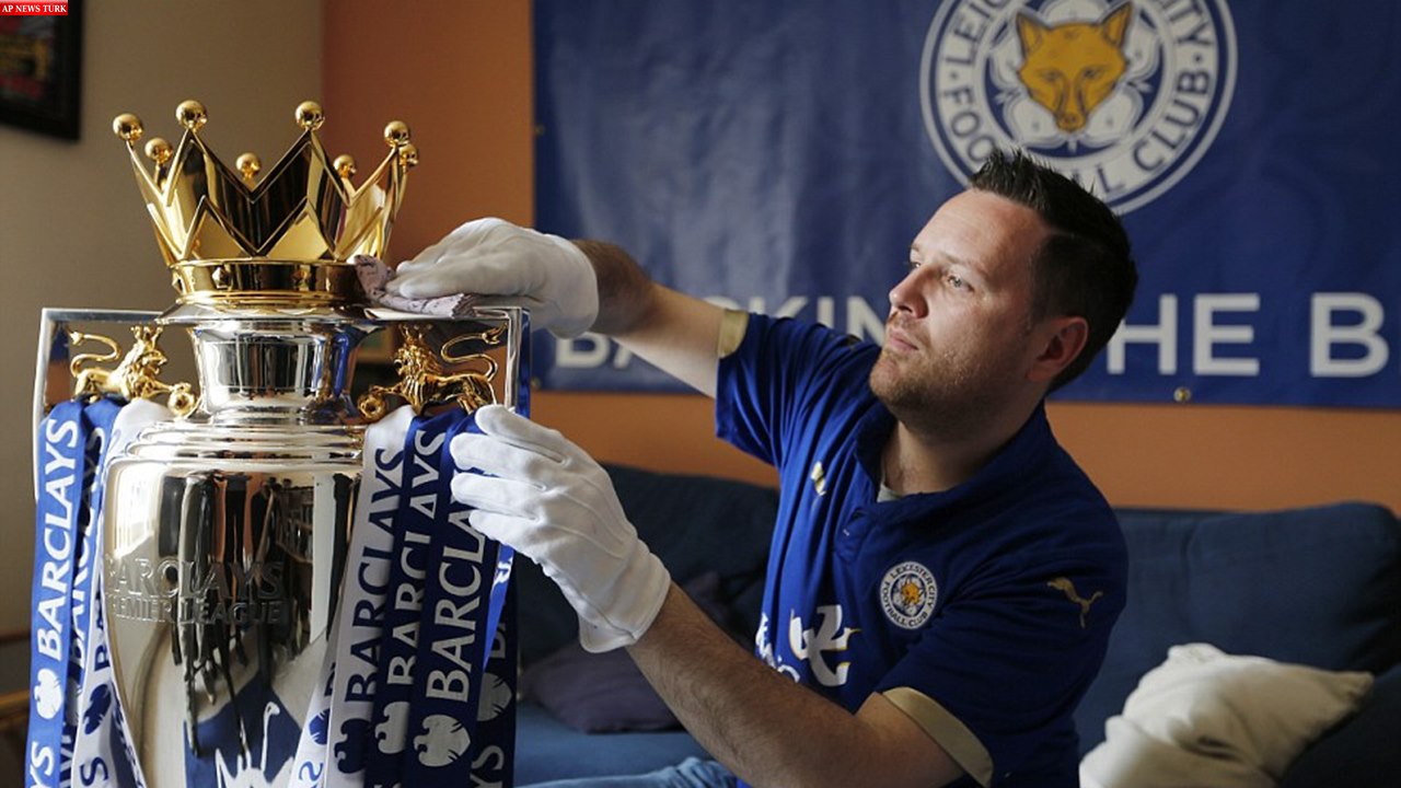 Mr Worthy has been warming up for his big opportunity by polishing the Premier League Trophy, pictured, now bearing Leicester’s colours