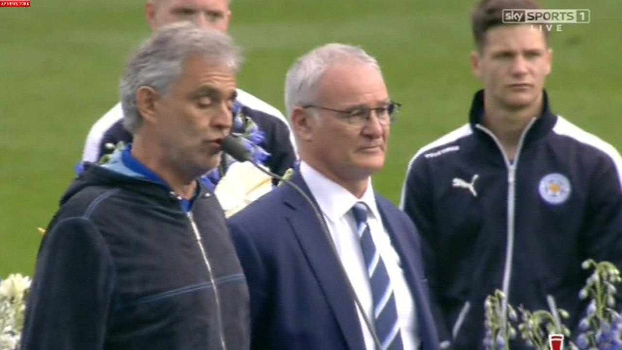 Andrea Bocelli sings to the crowd at a packed King Power Stadium, as the Leicester City fans began their title party before the game