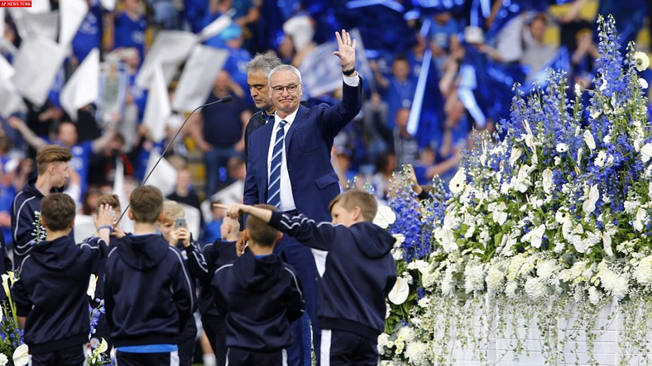 An Italian flag which read ‘Grazie Claudio’ could be seen in the crowd at the King Power Stadium on title party day in Leicester