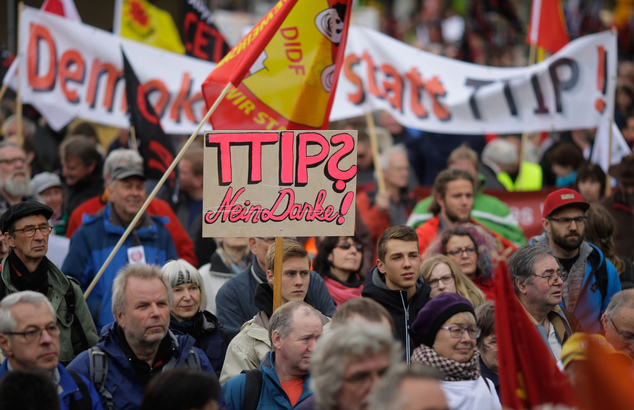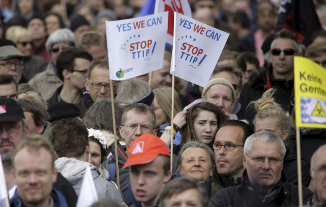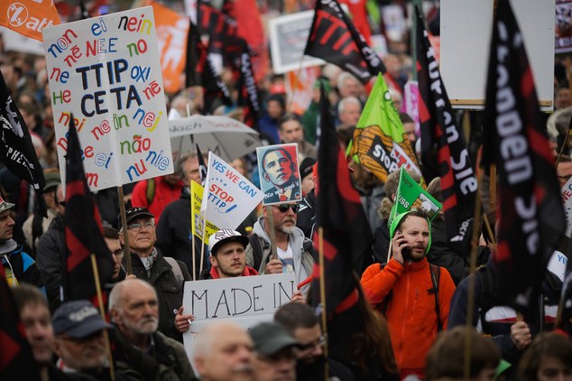Protestors demonstrate against the Trans-Atlantic Trade and Investment Partnership (TTIP) free trade agreement
