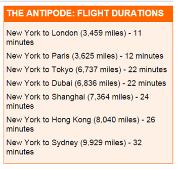 Dubbed the ‘Antipode’, it can carry 10 people up to 12,430 miles (20,000km) in under an hour, allowing it to travel from London to New York in just 11 minutes.