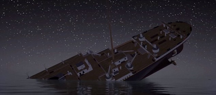 Each moment from when the ship strikes the iceberg to the moment it finally slips under the waters of the Arctic is recorded.