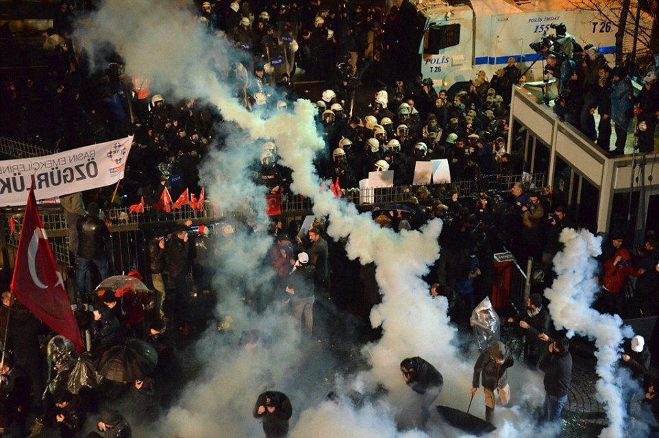 Riot police have fired rubber bullets and tear gas into crowds of demonstrators protesting against the forced take-over of Turkey’s largest-circulation newspaper – described as one of the ‘darkest days’ in the history of the country’s press.