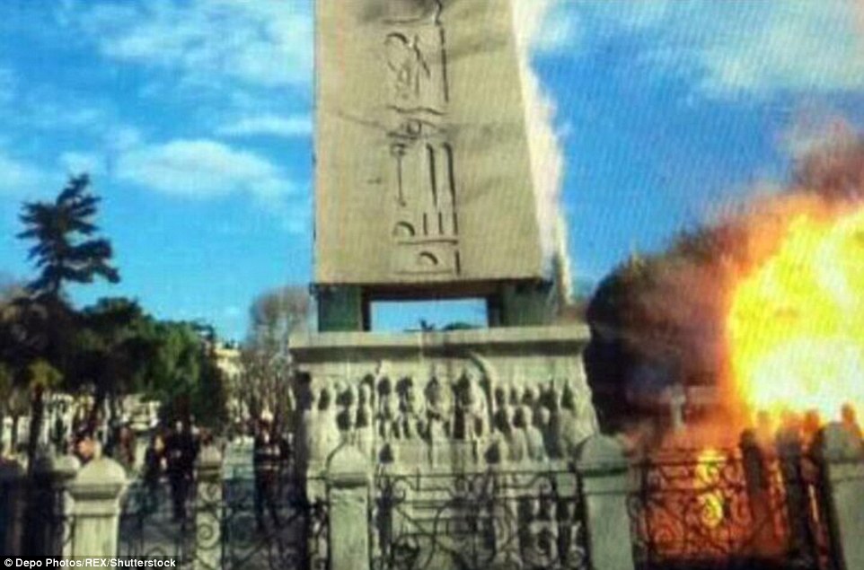 Tourism terror: The blast occurred next to the Obelisk of Theodosius, a monument from ancient Egypt, near world-famous sites including the Blue Mosque, Topkapi Palace and the Hagia Sophia museum