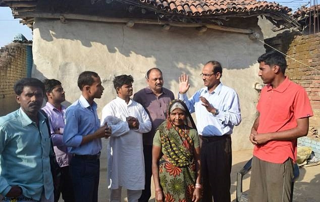 Members of Miss Kunti’s rural village in Chatra, in India’s eastern state of Jhakard, have raised money to help her visit doctors in bigger cities who might be able to help. Pictured is a local doctor talking to her family