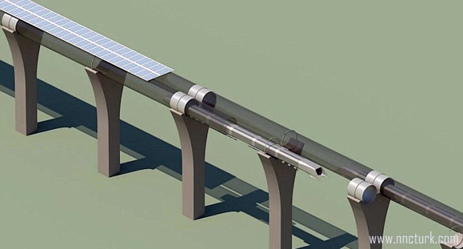 Capsules would float on a thin cushion of air and use magnetic attraction and solar power to zoom through nearly airless tubes.