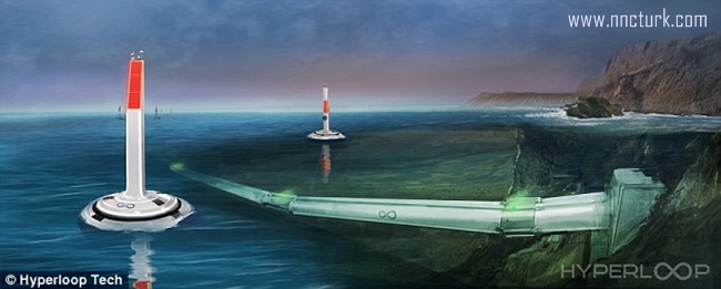 Passengers would sit in either individual or group pods, which would then be accelerated with magnets. Capsules carrying six to eight people would depart every 30 seconds, with tickets costing around $20 (£13) each way. Pictured is an artist’s impression of an underwater Hyperloop design