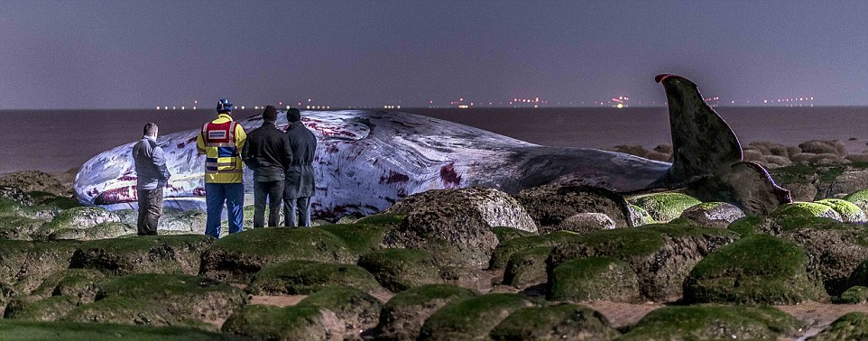 Beth Phelps of British Divers Marine Rescue said before the whale died that it was ‘bleeding a lot’ and could not be moved.