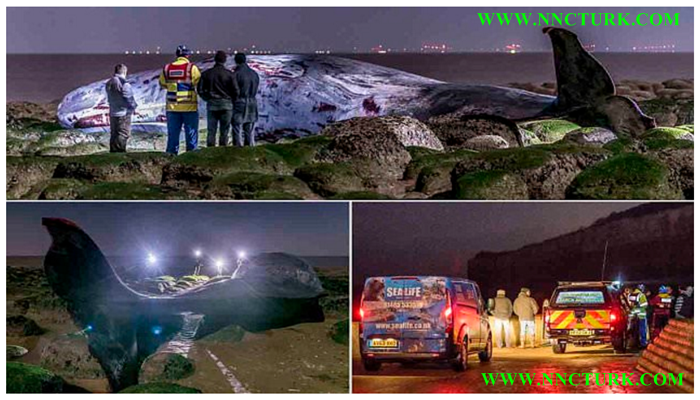 The bull whale was stranded beneath cliffs along the coast at Hunstanton, in Norfolk, and died an hour and a half before low tide just before midnight, after becoming trapped on Friday afternoon.