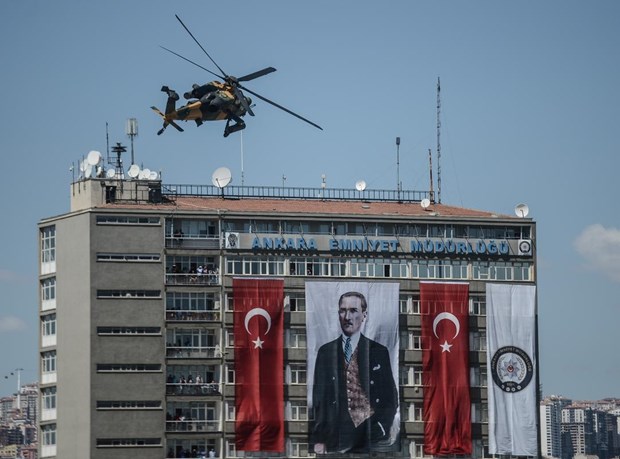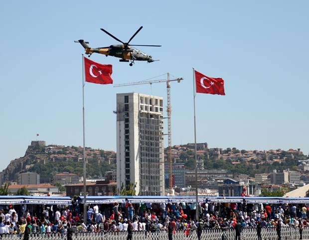 Geçit töreninin ardından, solo gösteri gerçekleştiren, milli taarruz helikopteri ATAK ise göz kamaştırdı.