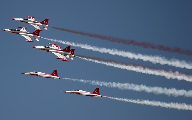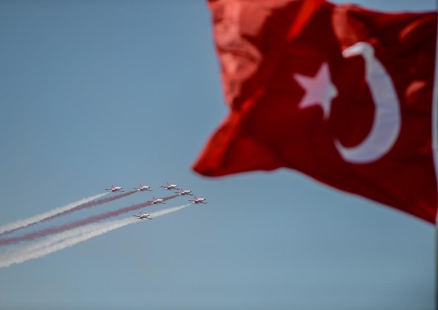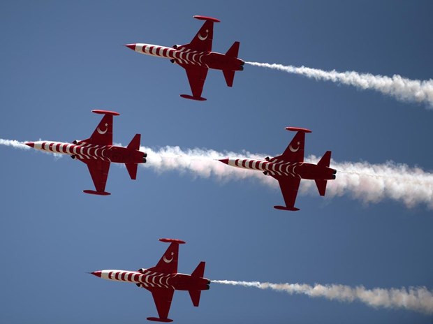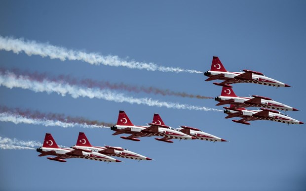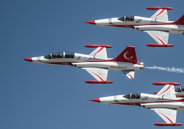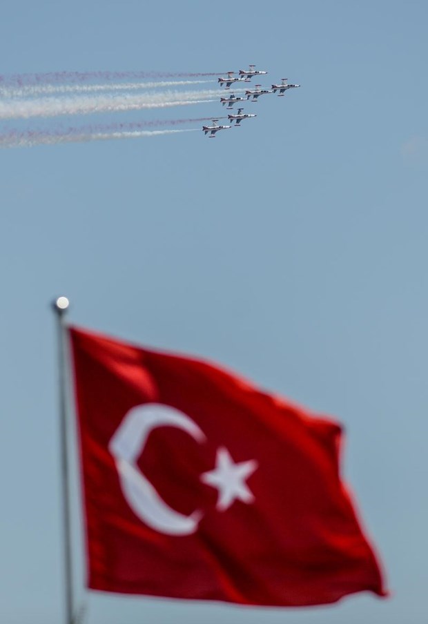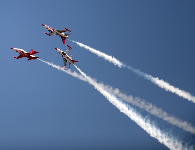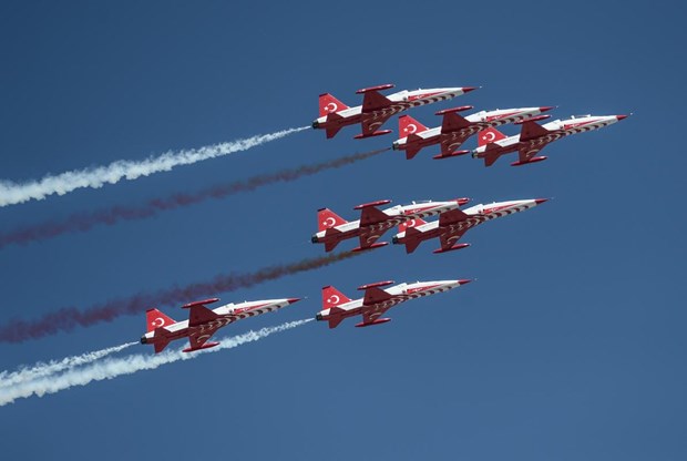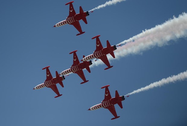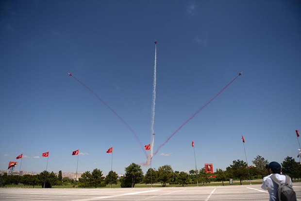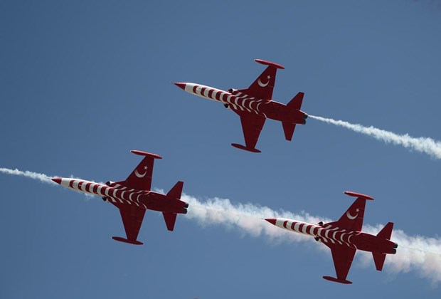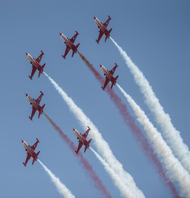 Tören, Türk Hava Kuvvetleri Akrobasi Timi ”Türk Yıldızları”nın gösterisiyle sona erdi.