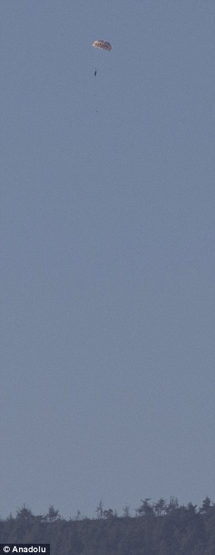 Both pilots ejected themselves from the jet and could be seen parachuting down to the ground, where one has been reported dead and the other captured by Syrian Turkmen rebels.