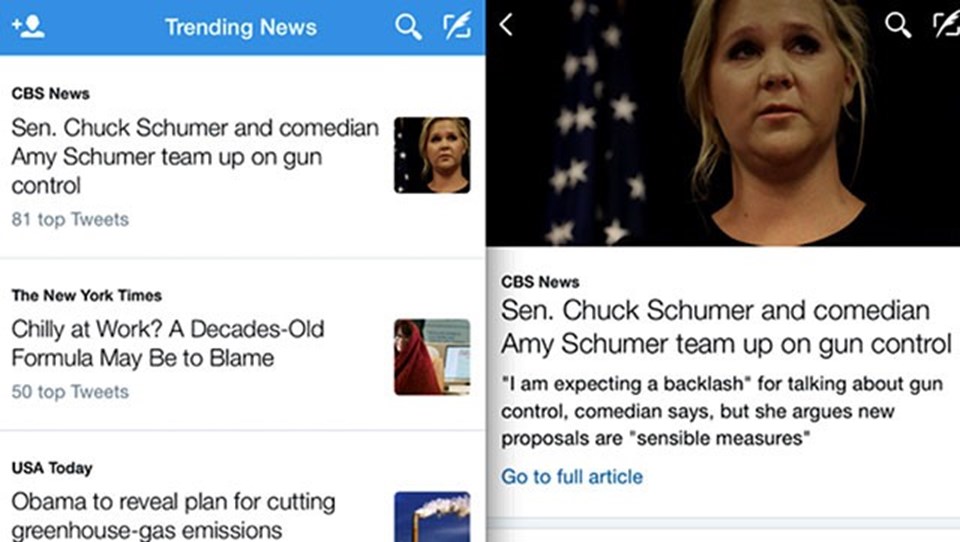 Facebook’un bu hamlesinin bir benzeri mikro blog sitesi Twitter’dan geldi. Android ve iOS işletim sistemine sahip mobil cihazlar için geliştirilen yeni özellik sayesinde mobil kullanıcılar Twitter üzerinden mesaj ve bildirimler vasıtasıyla haberlere ulaşacak