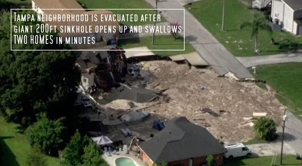 Tampa neighborhood is evacuated after giant 200ft sinkhole opens up and swallows TWO HOMES in minutes